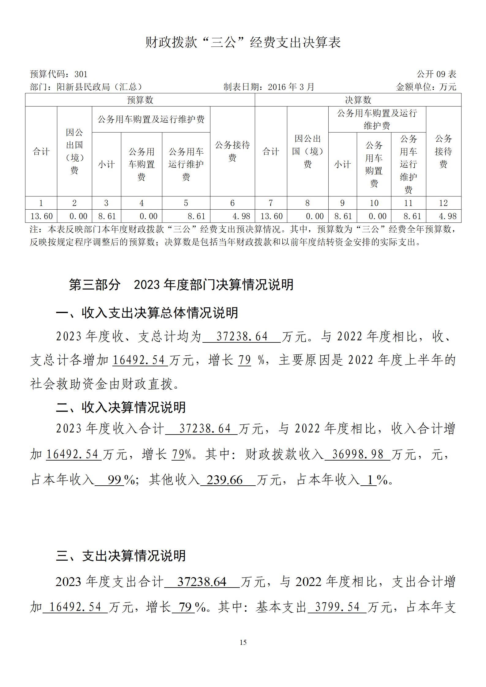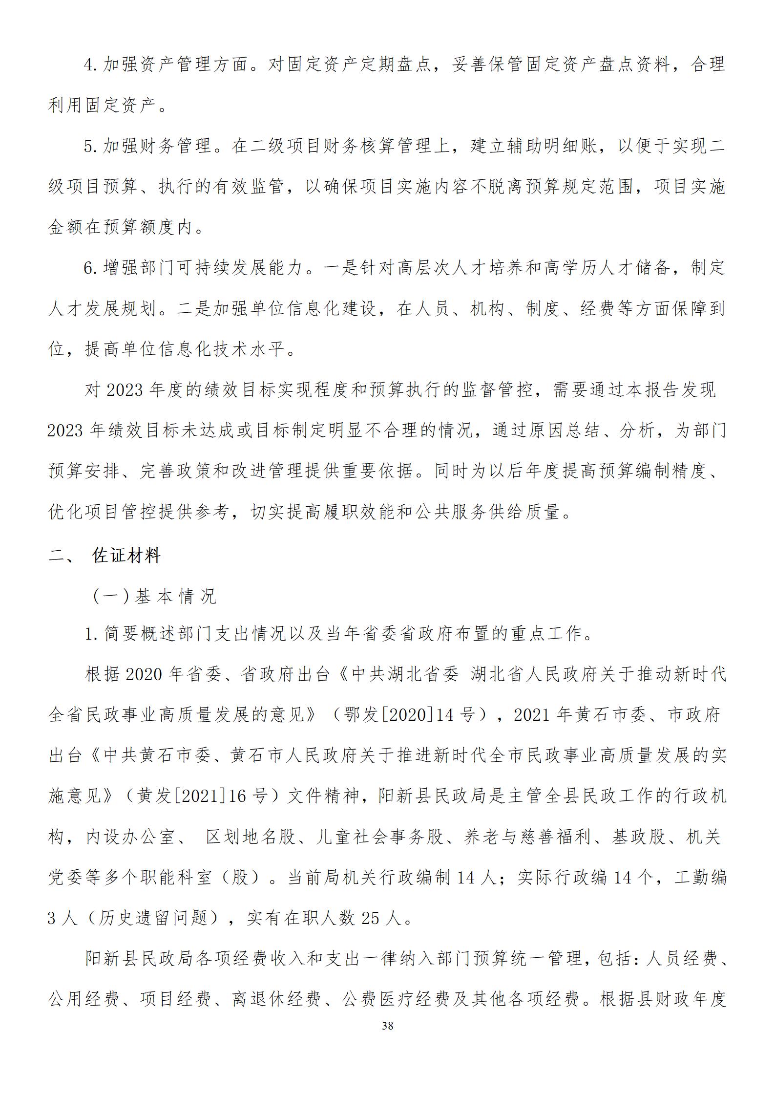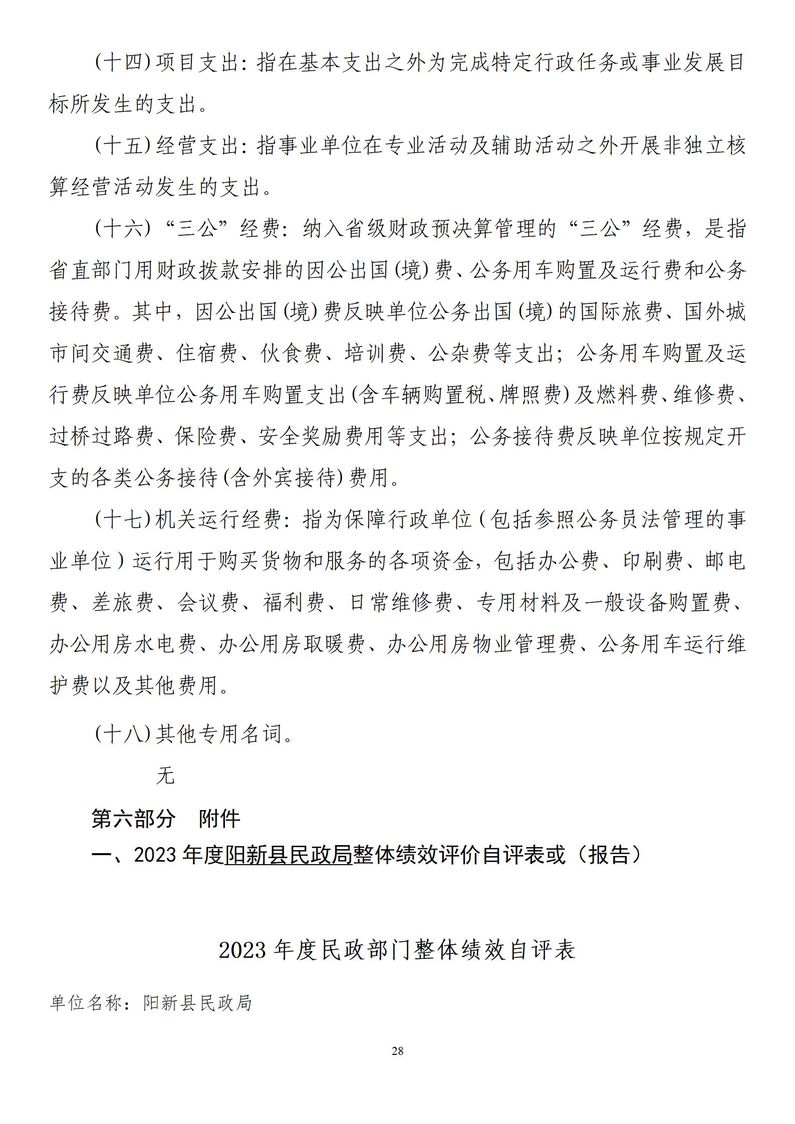 陽新縣民政局部門匯總2023年度部門決算 |
