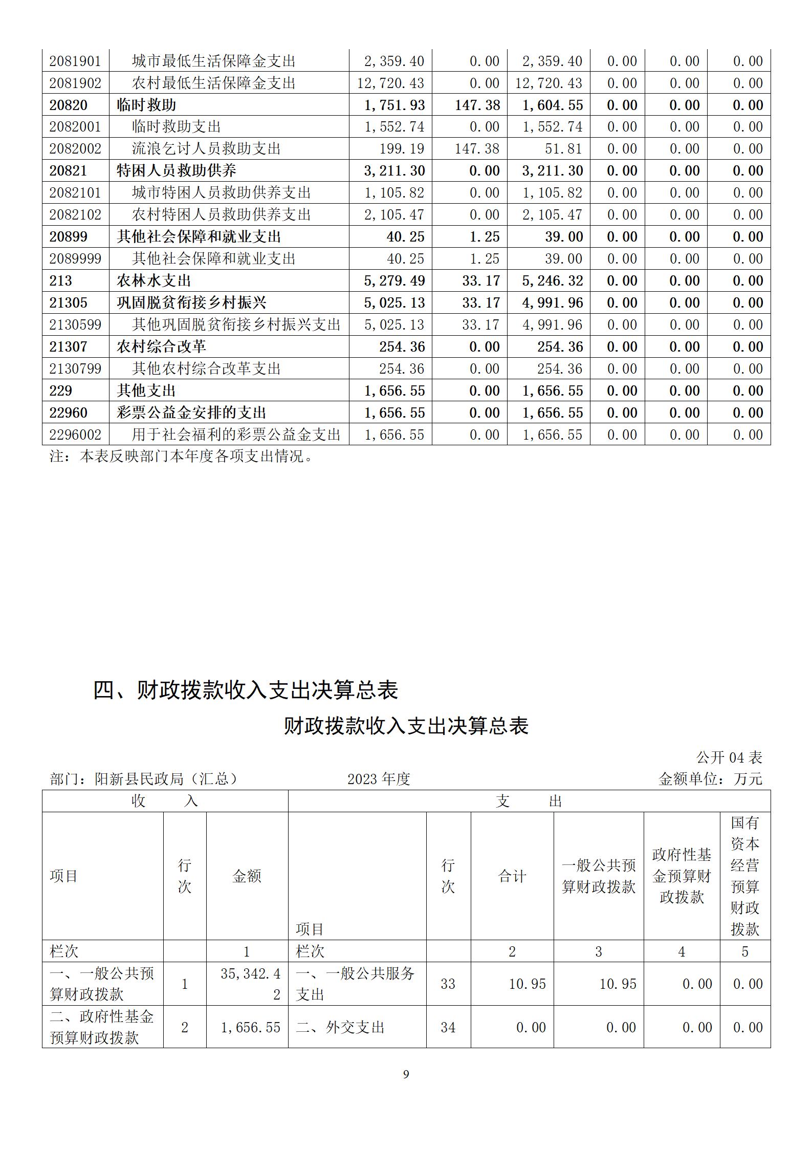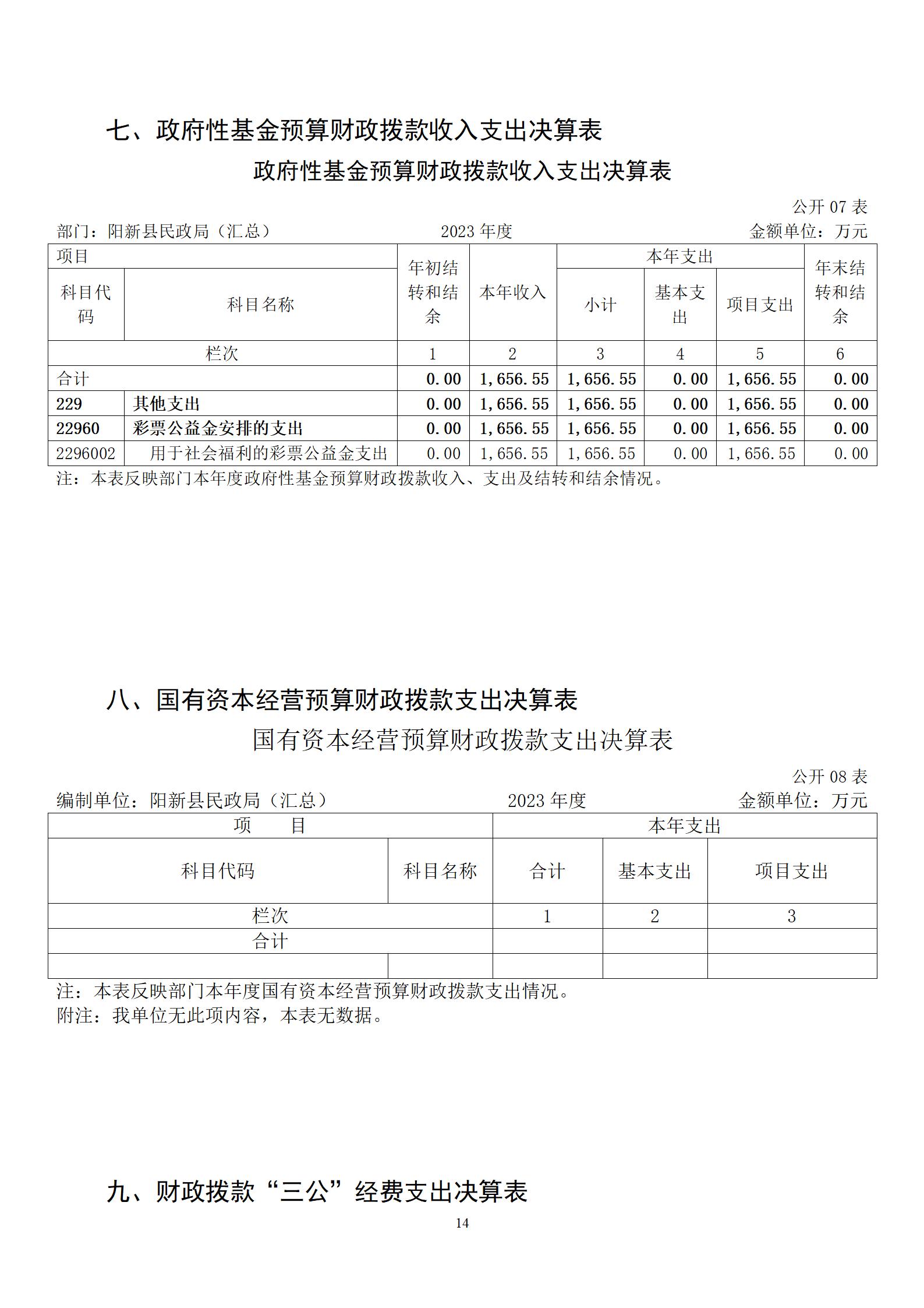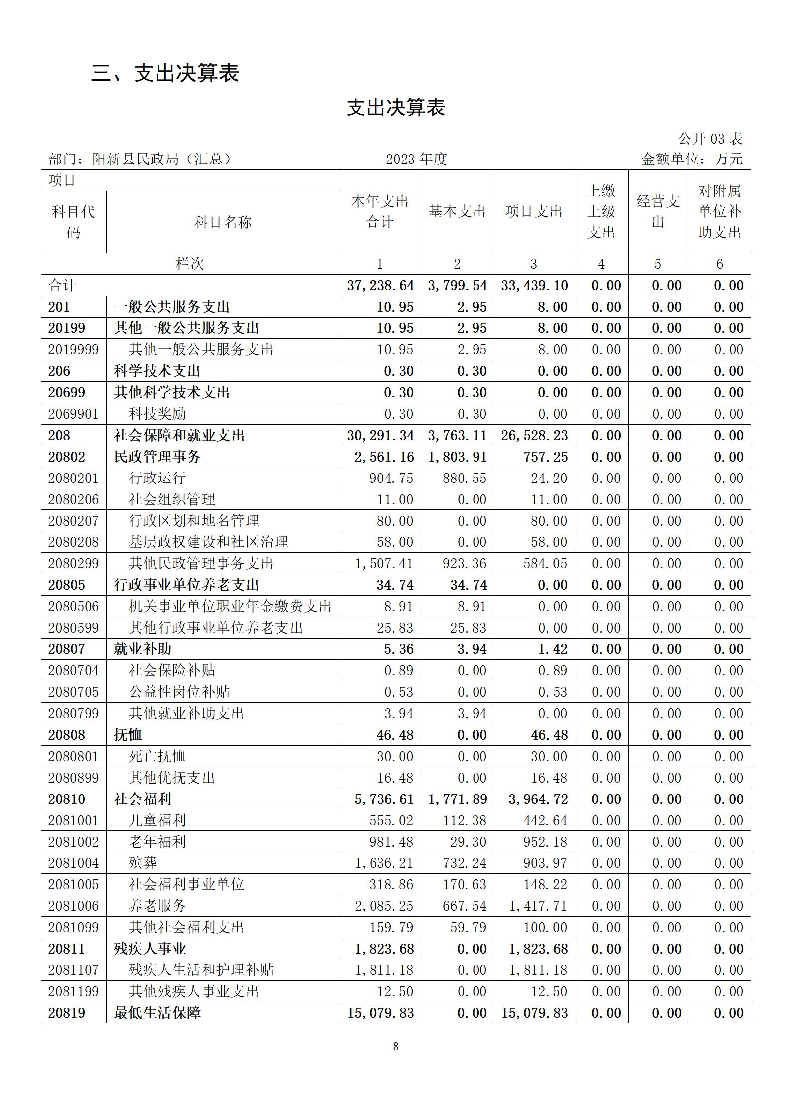 陽新縣民政局部門匯總2023年度部門決算 |